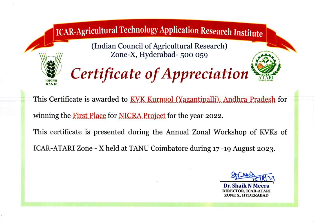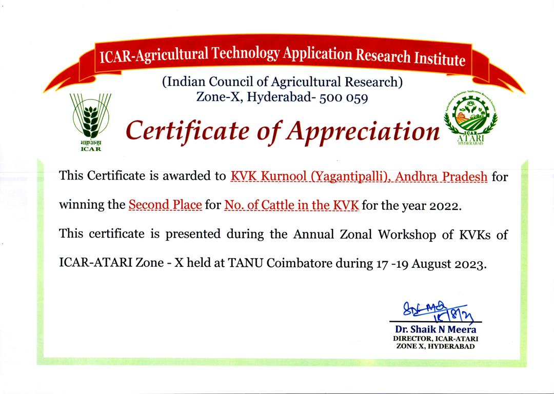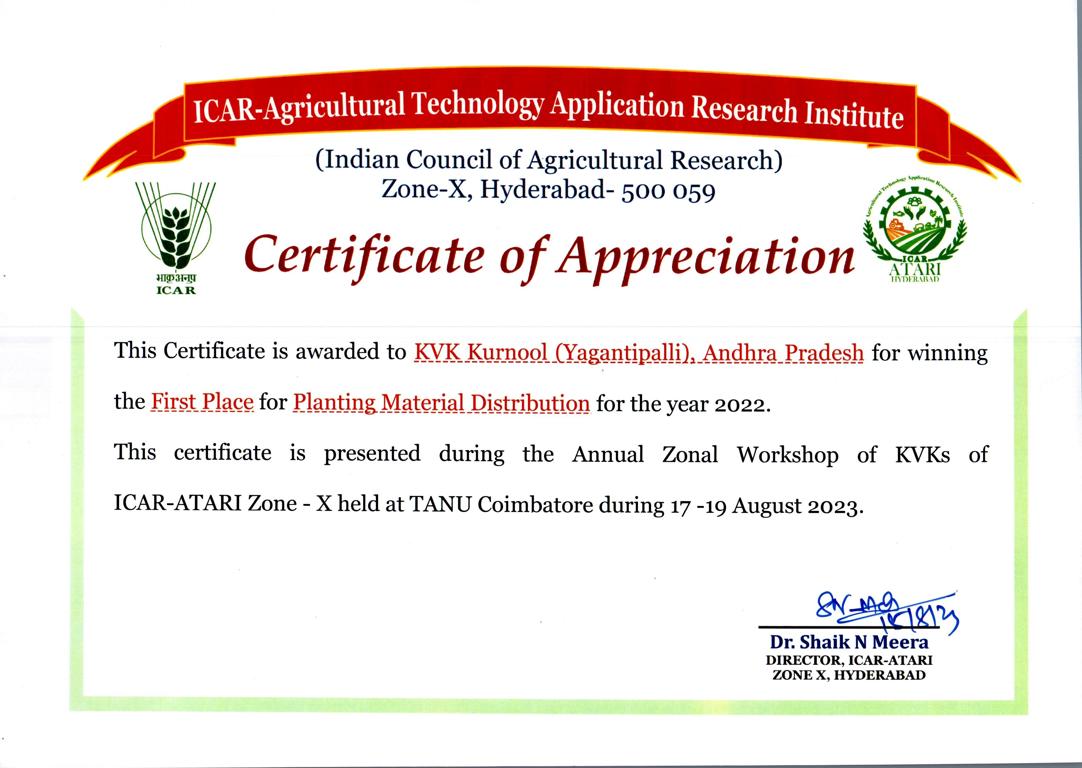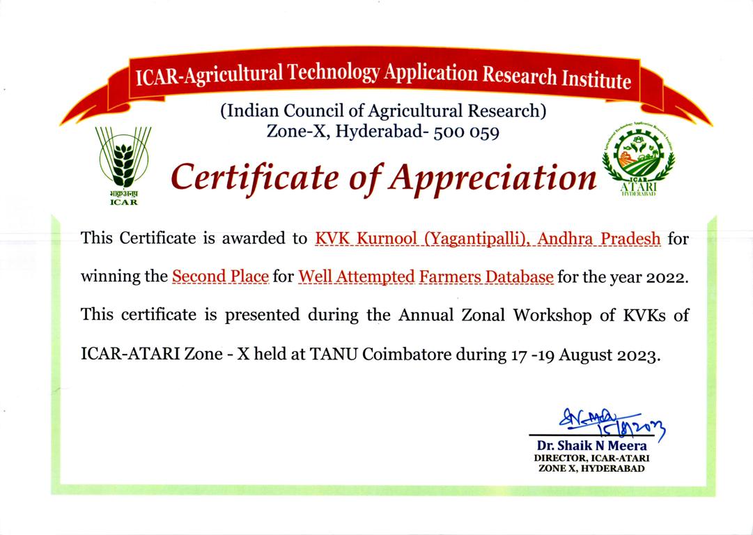 Krishi Vigyan Kendra, Yagantipalle - 518124, Banaganapalle mandal, Nandyal District, Andhra Pradesh.