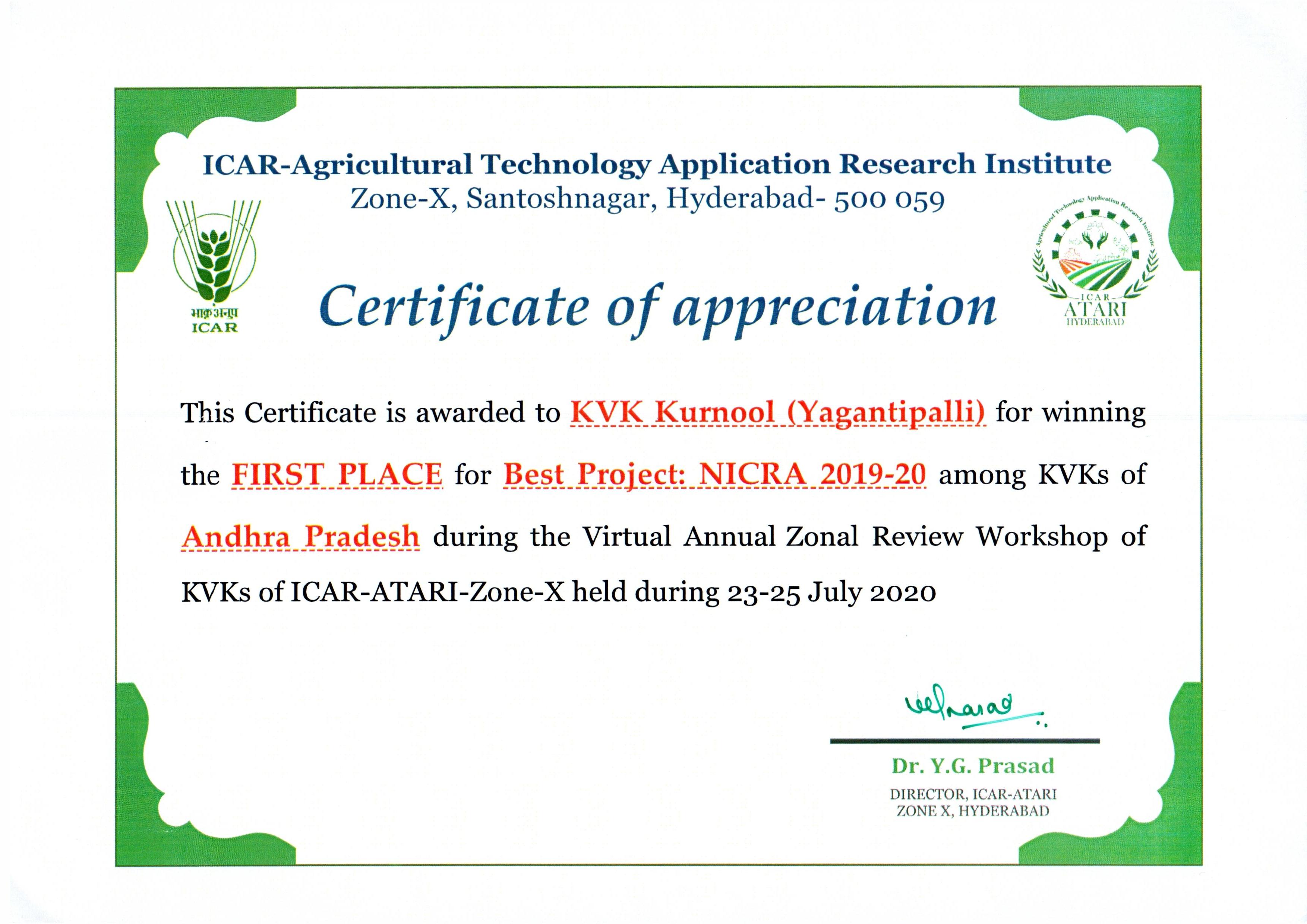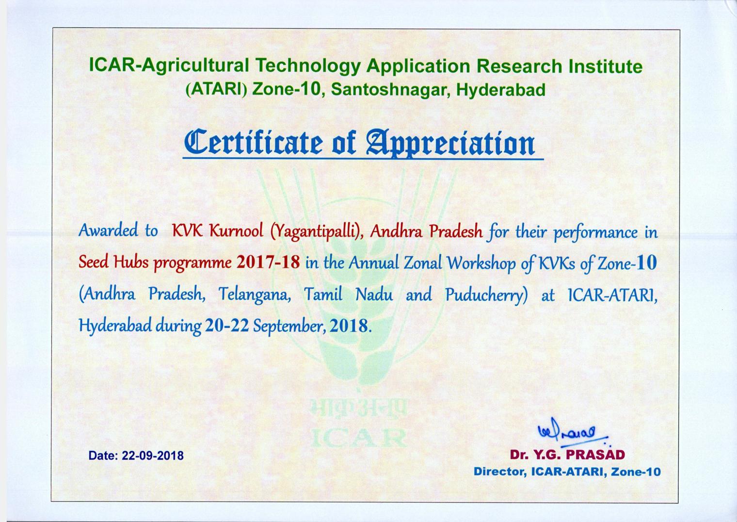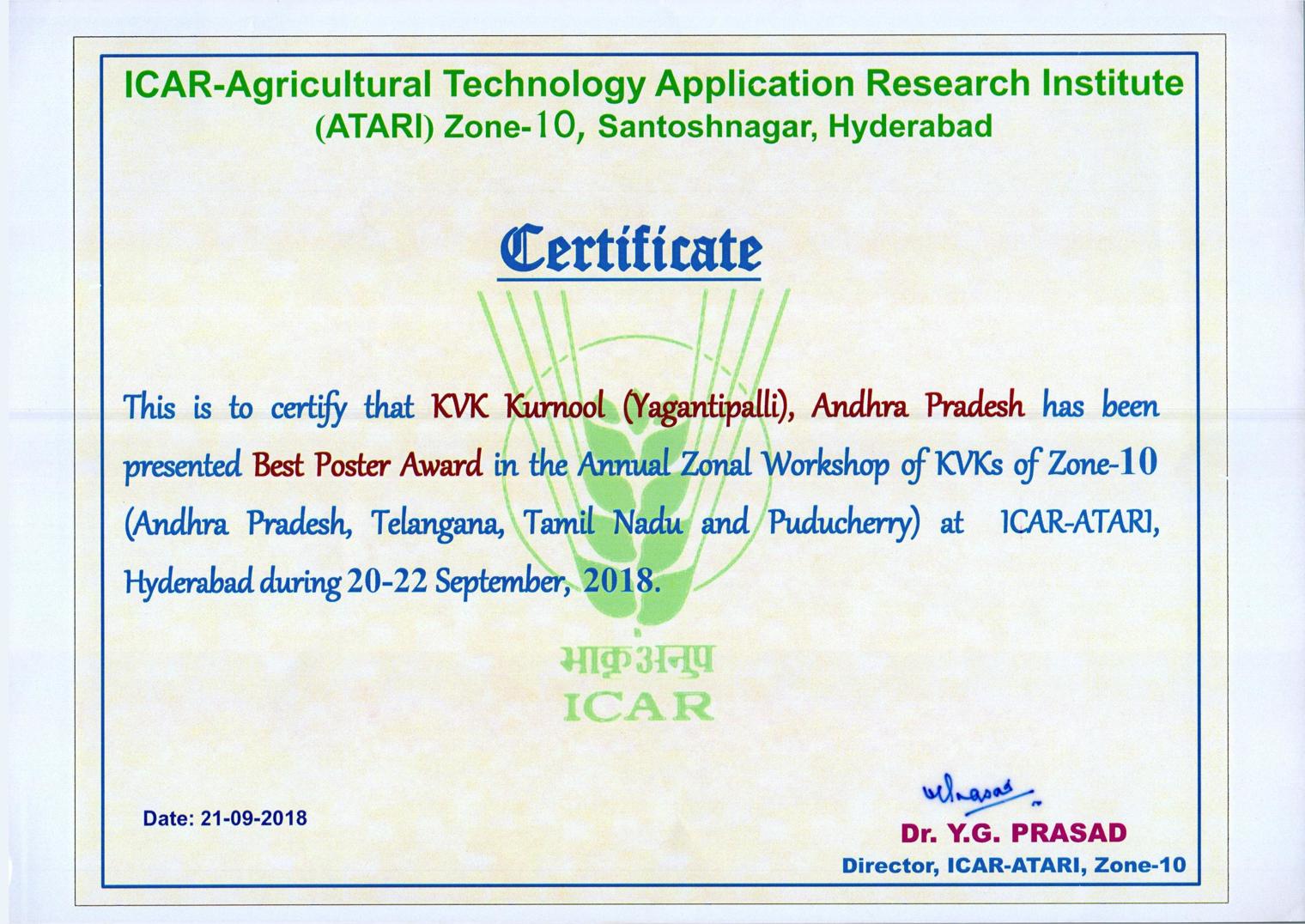 Krishi Vigyan Kendra, Yagantipalle - 518124, Banaganapalle mandal, Nandyal District, Andhra Pradesh.