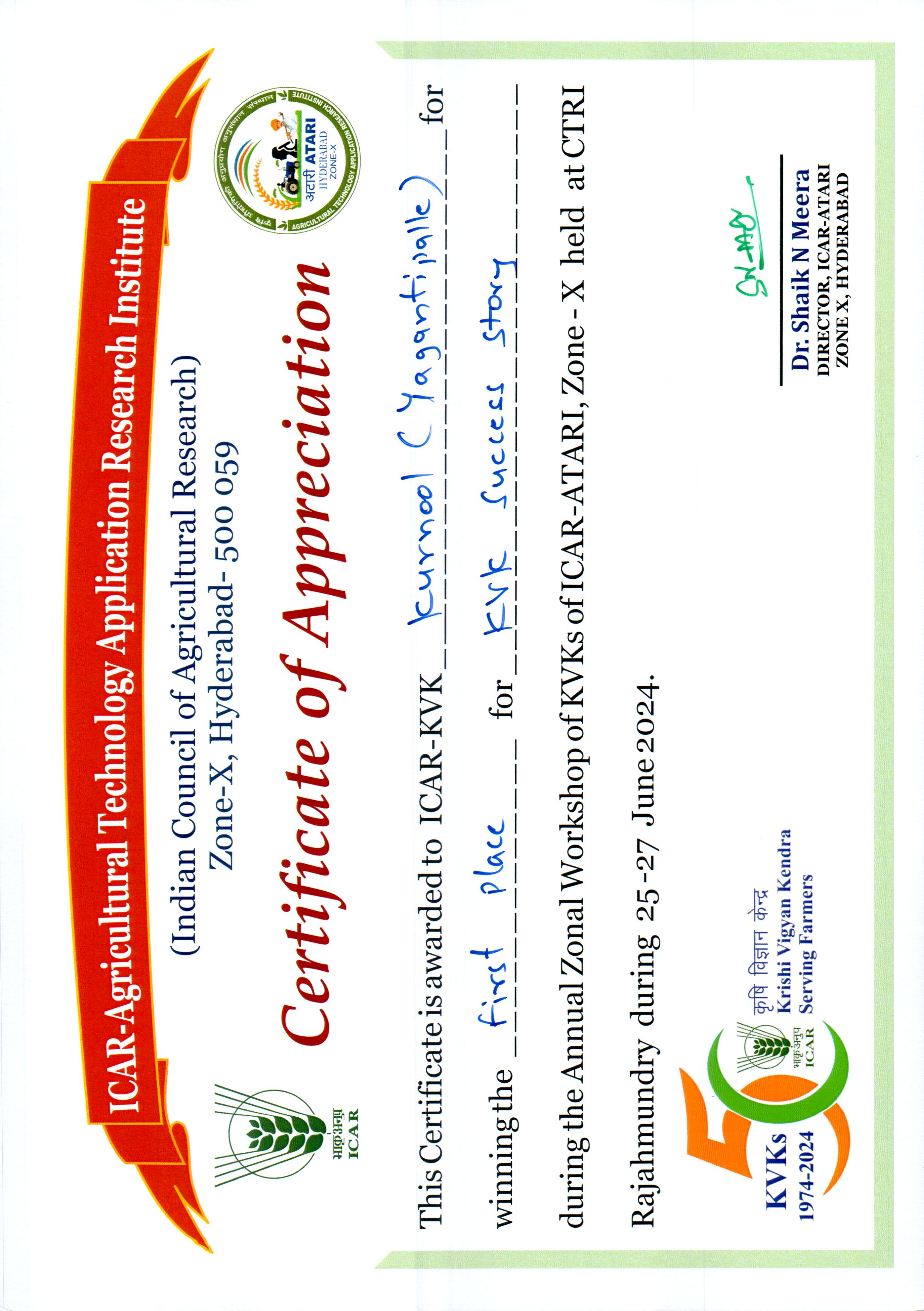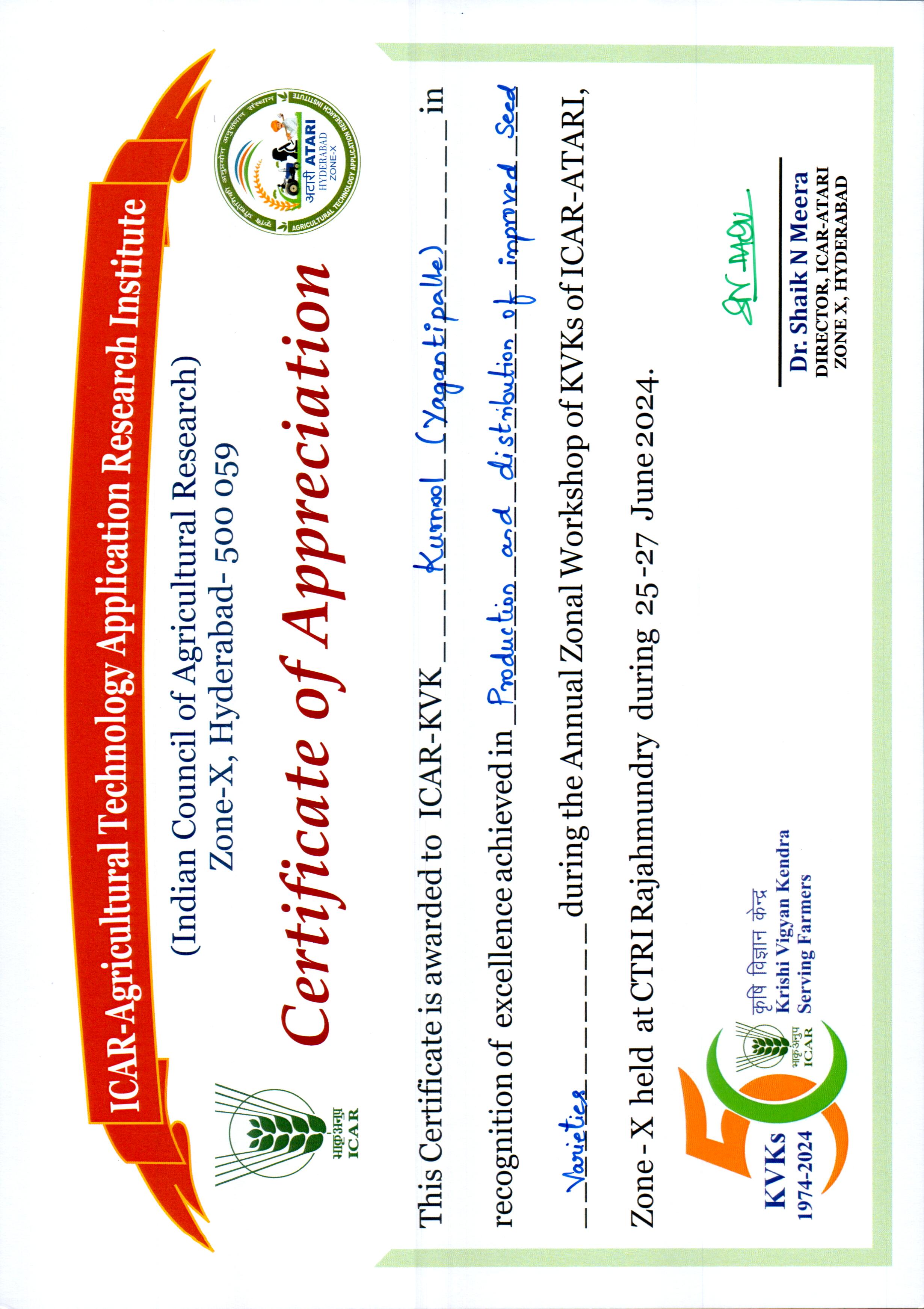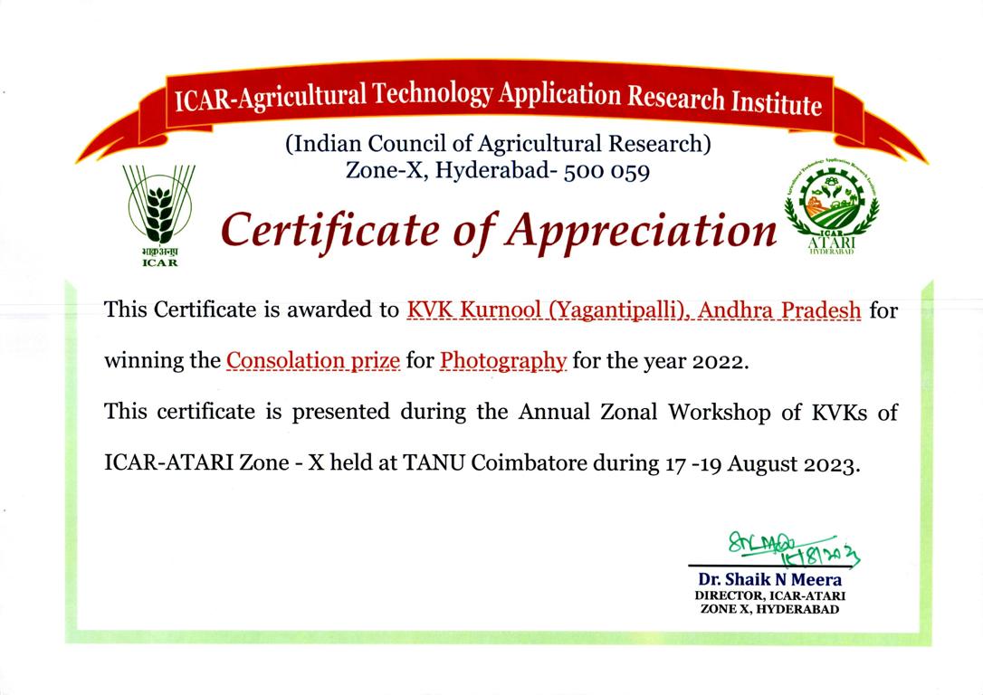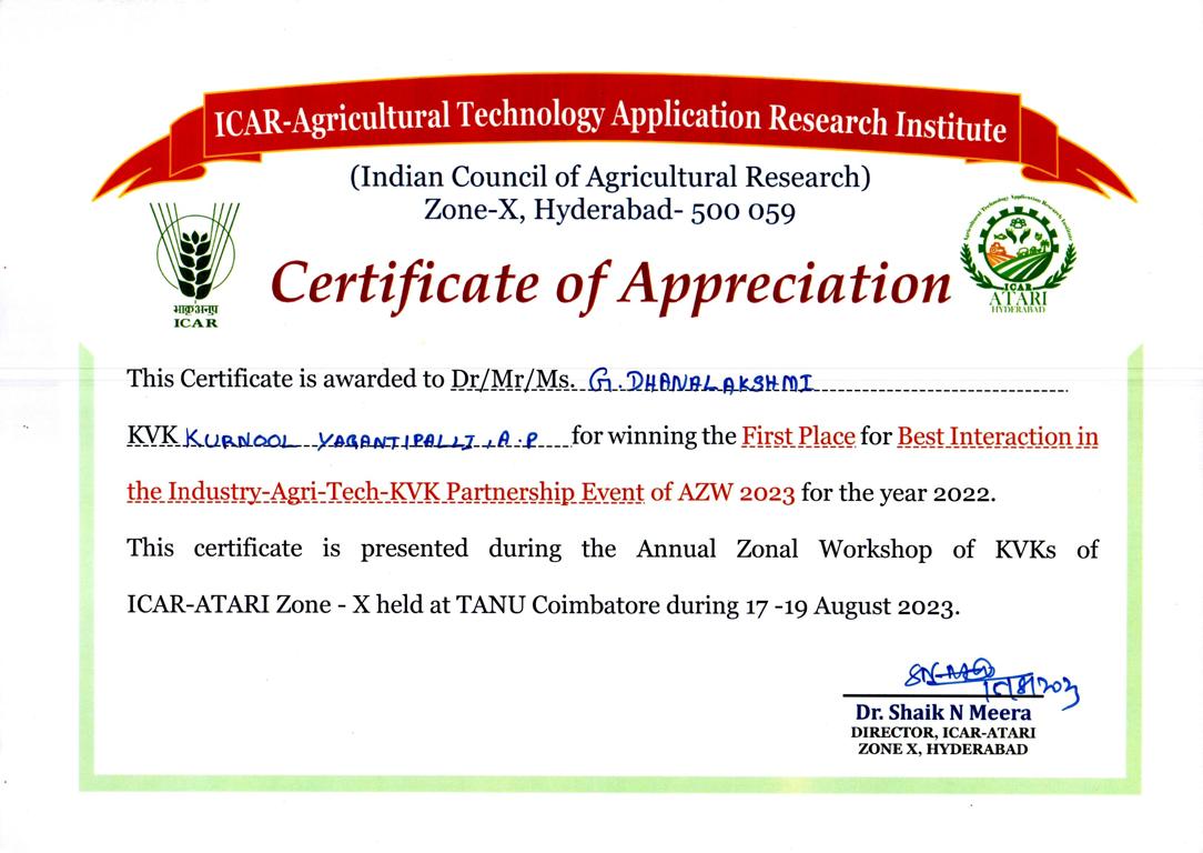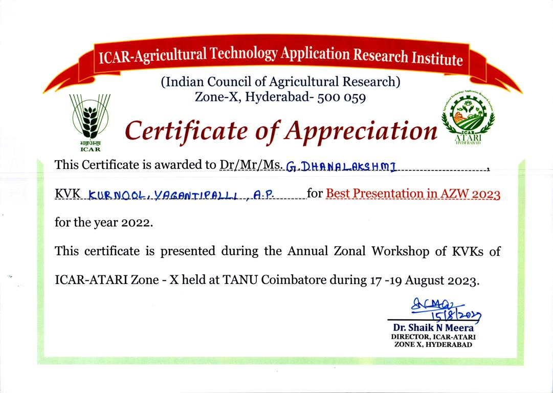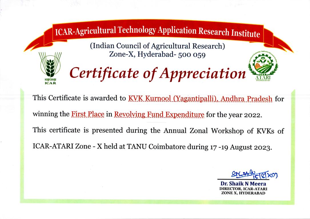 Overall Best Performing KVK-2023 of ICAR-ATARI, Zone-X, Hyderabad
