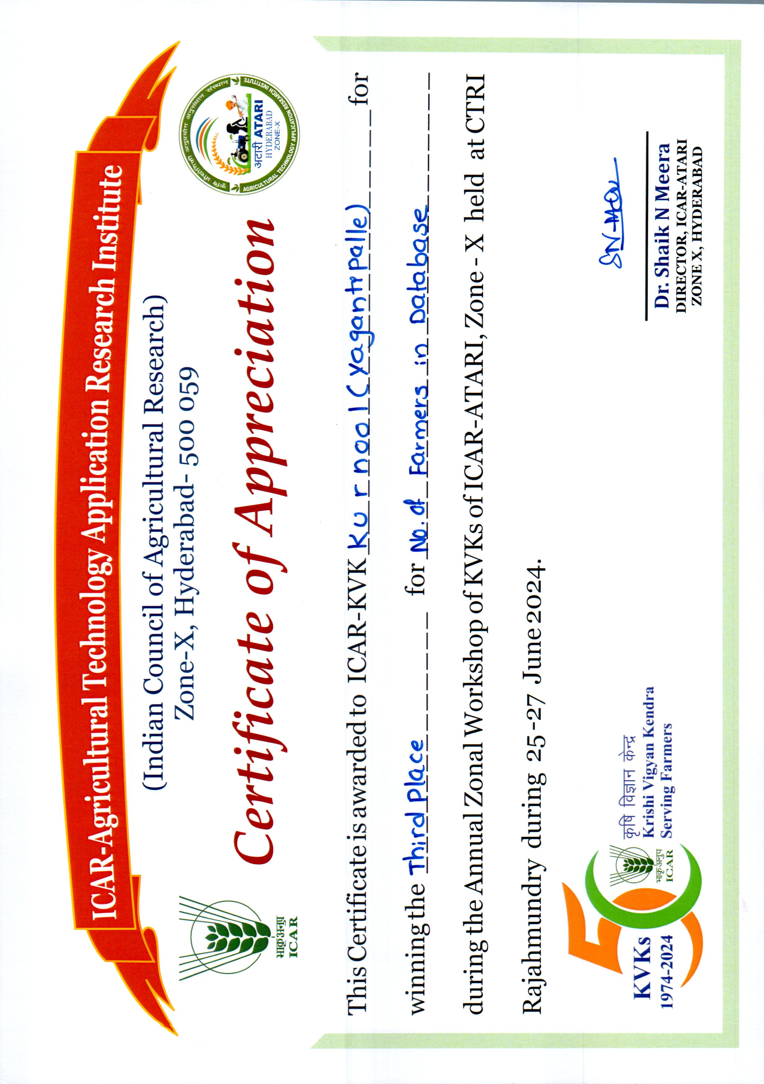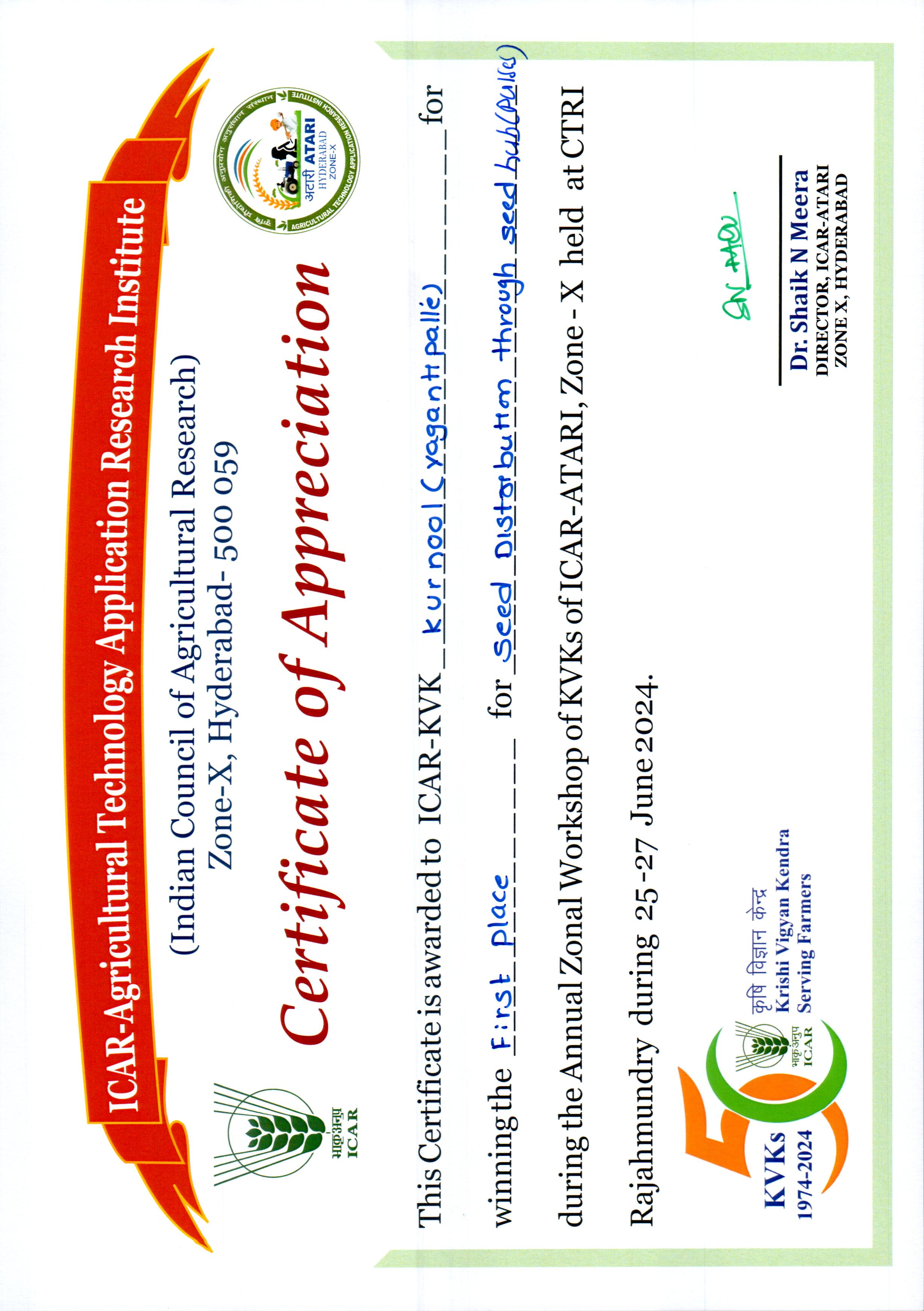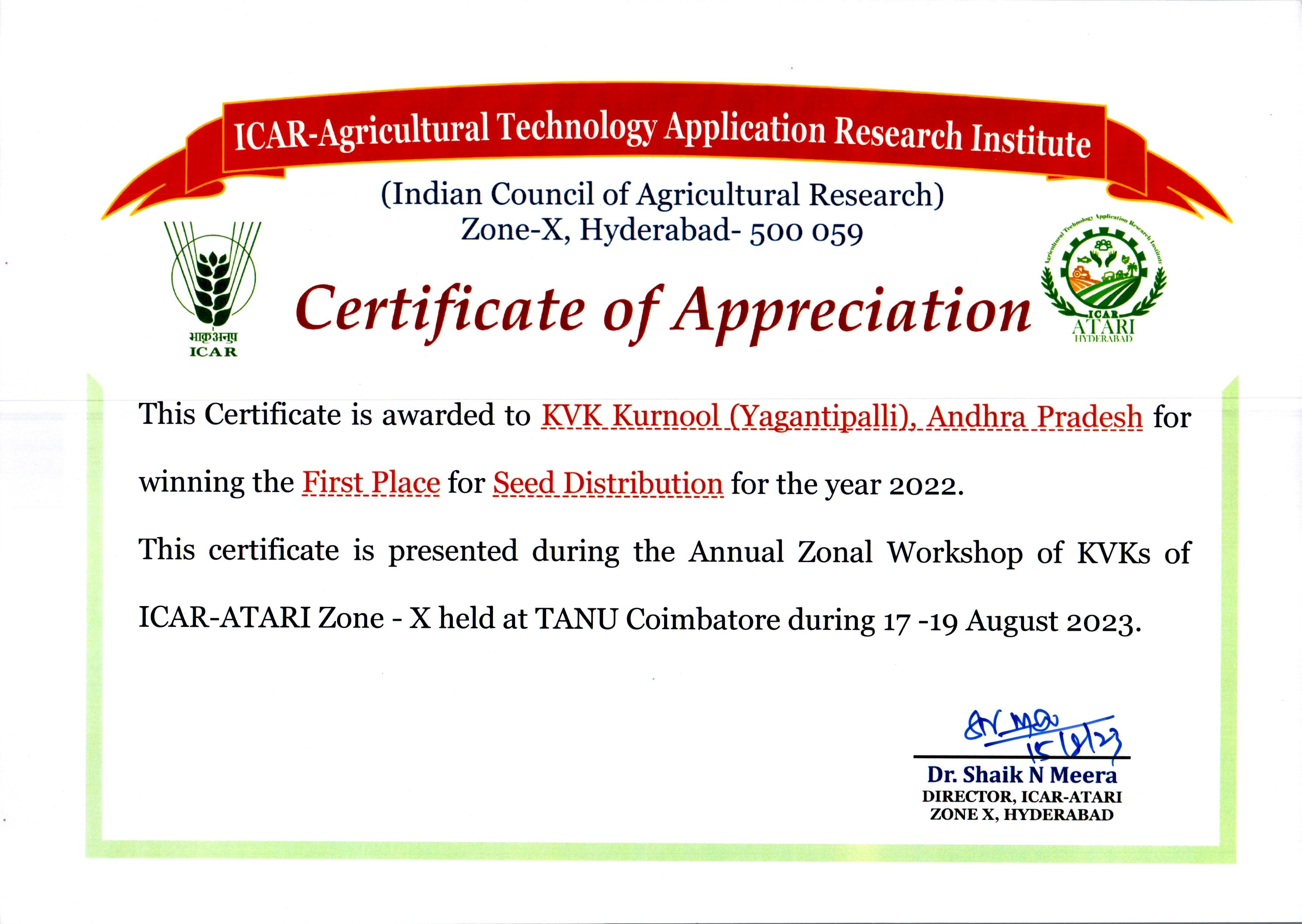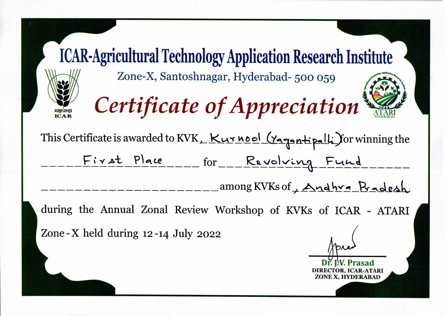 Overall Best Performing KVK-2023 of ICAR-ATARI, Zone-X, Hyderabad
