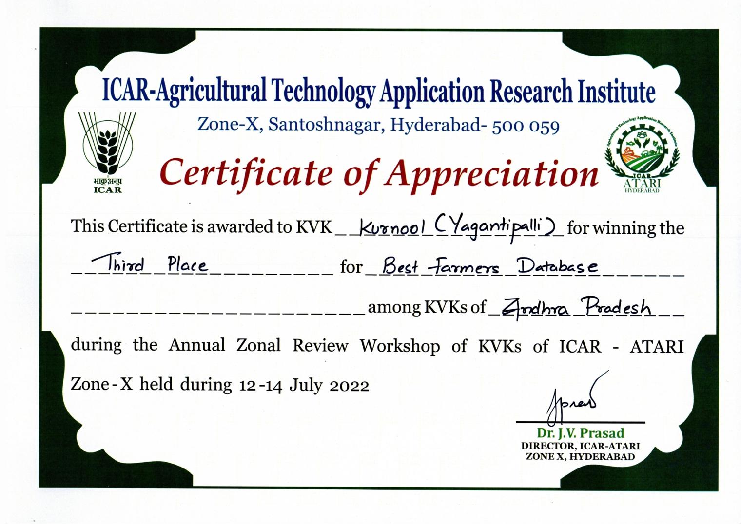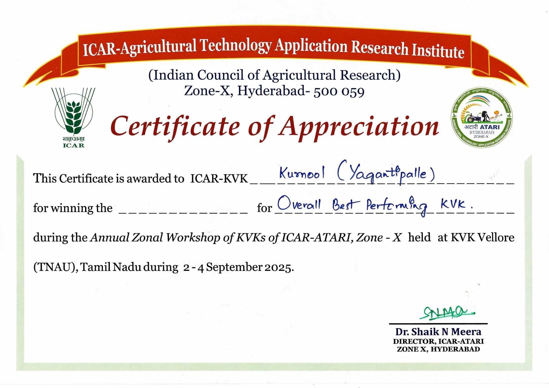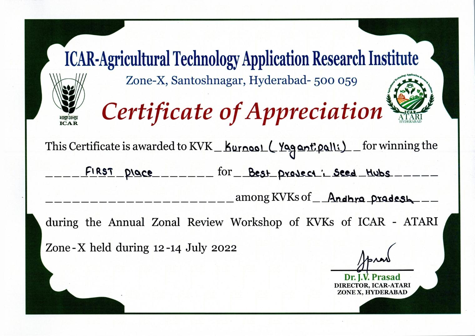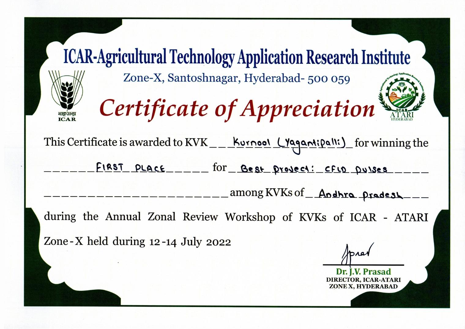Overall Best Performing KVK-2023 of ICAR-ATARI, Zone-X, Hyderabad