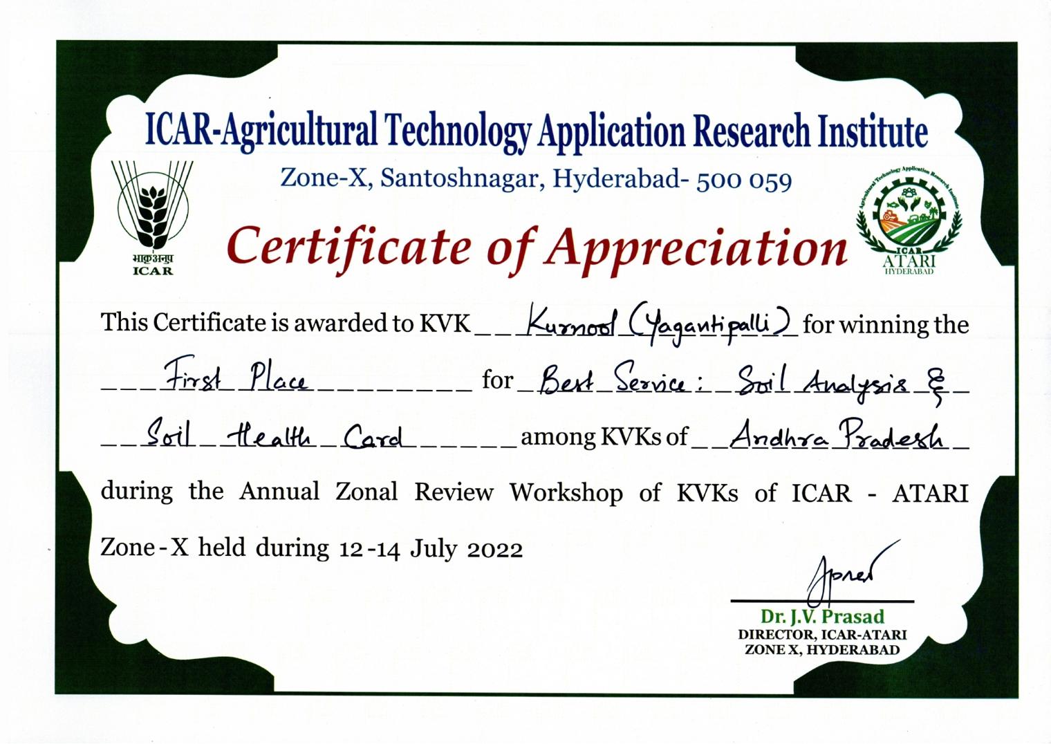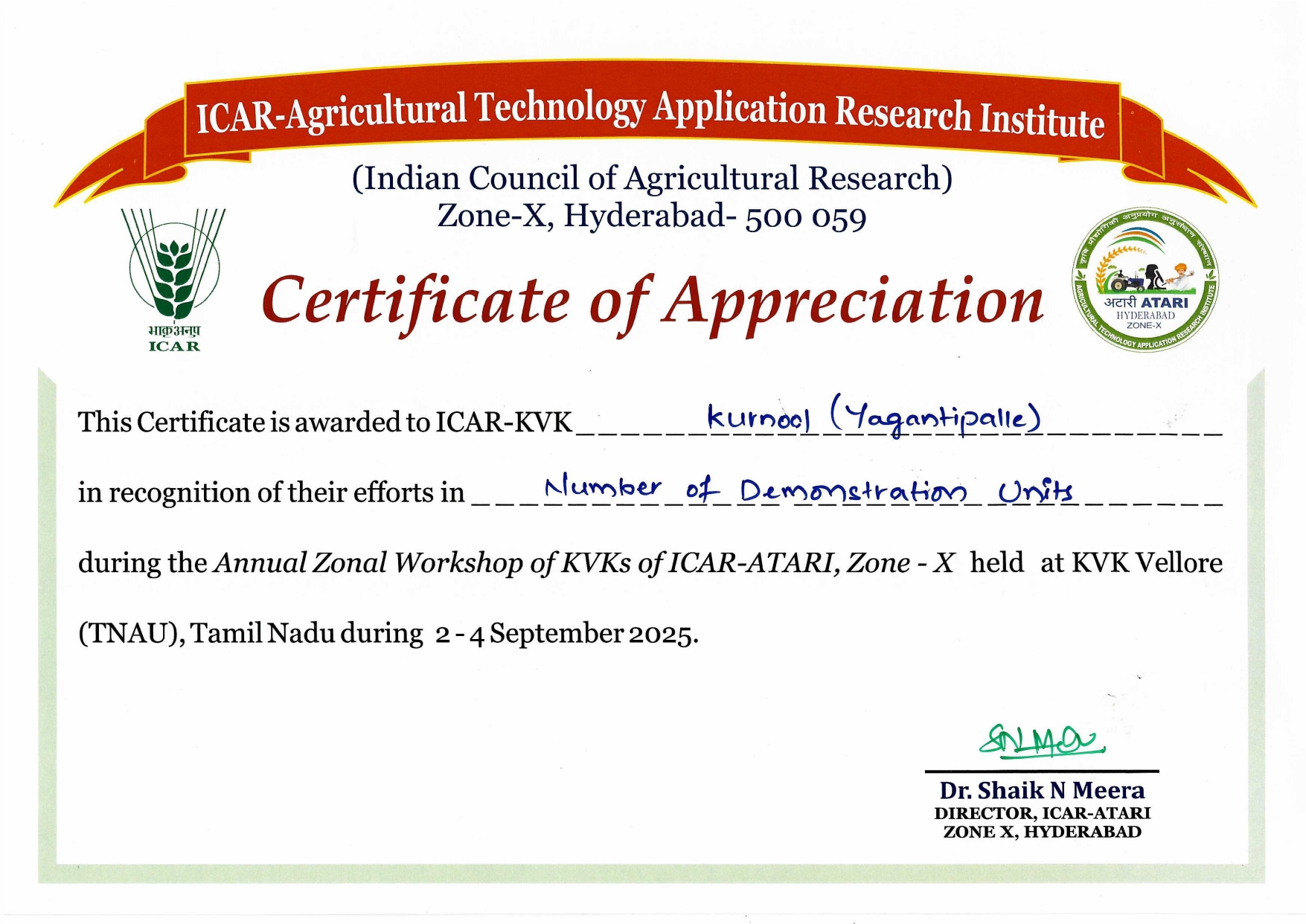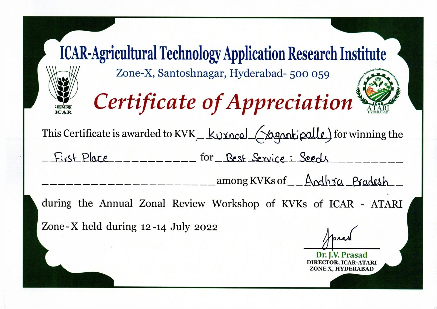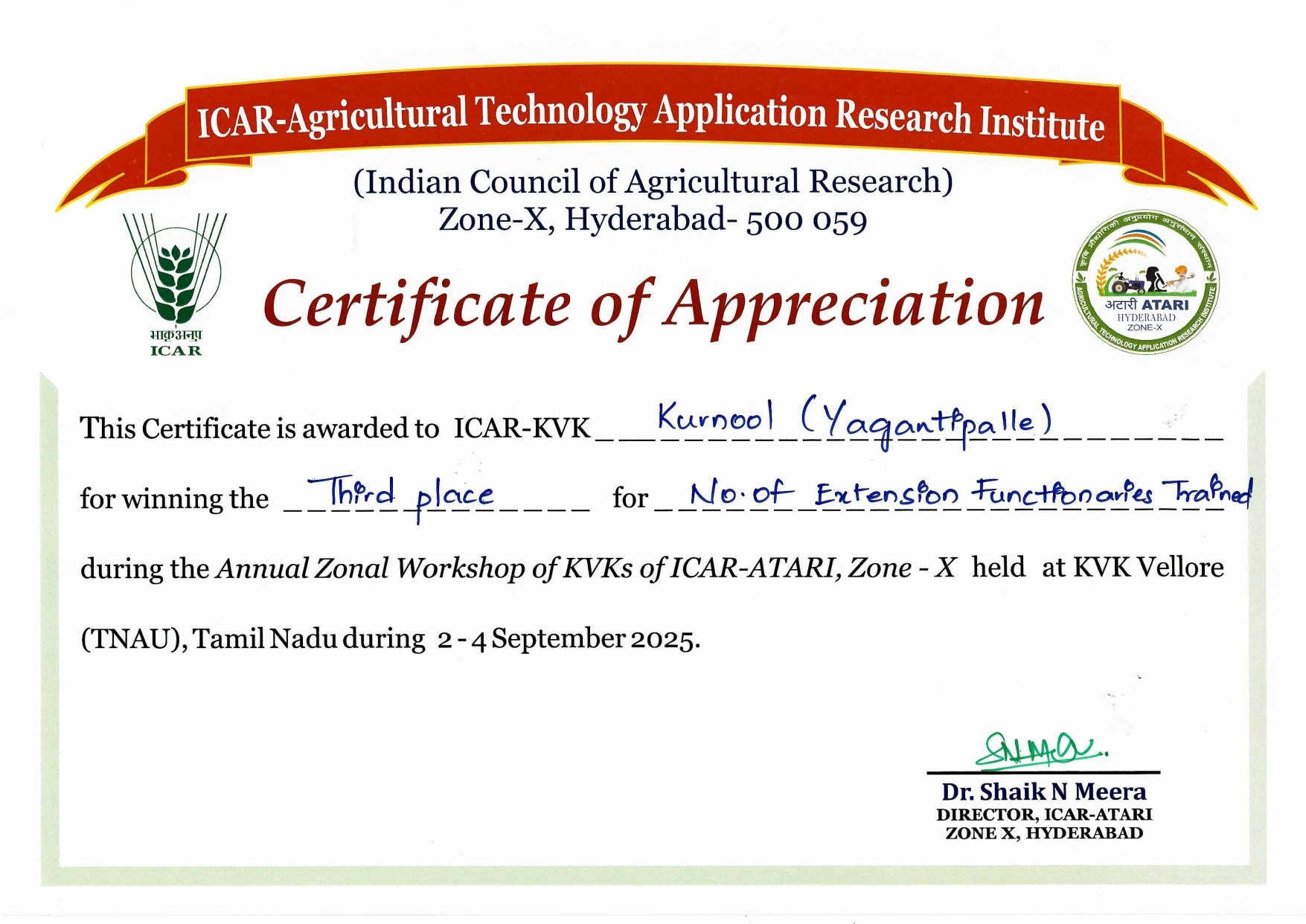 Overall Best Performing KVK-2023 of ICAR-ATARI, Zone-X, Hyderabad