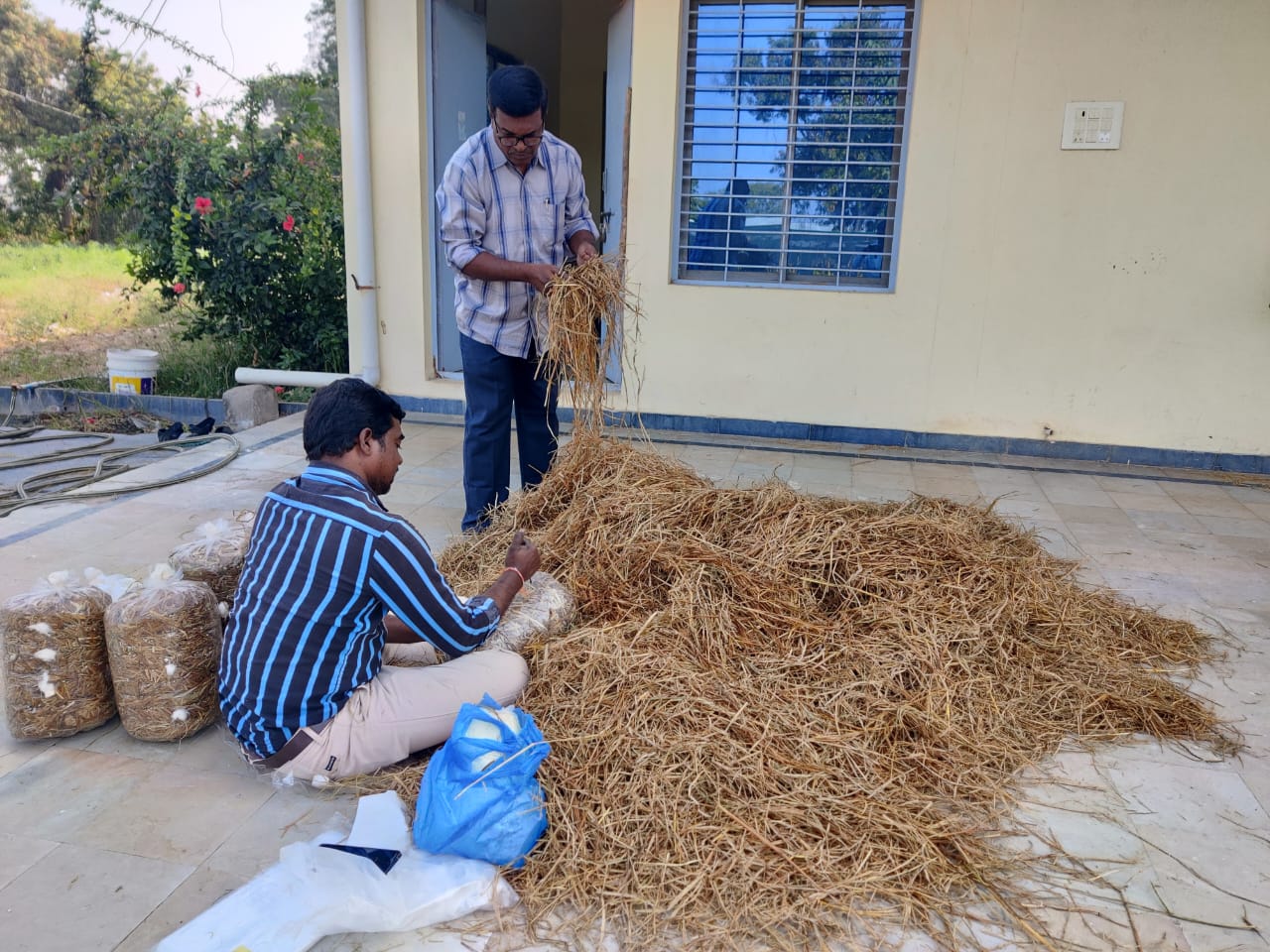KVK established mushroom production unit with financial assistance of RKVY scheme in 2019 with the production capacity of 1 ton/annum. With size of 50 ×25 sq ft building partitioned into 12 ×24 sq ft working area, 12×12 sq ft of spawn room, 12×12 sq ft of dark room and 24×24 sq ft of cropping room, apart from 15×15 sq ft of drying area in outside. We are cultivating milky and oyster mushrooms and providing hands on training to needy rural women and unemployed youth. We provide firsthand knowledge on mushroom cultivation aspects to the RAWEP and AELP students of agriculture and allied sectors.